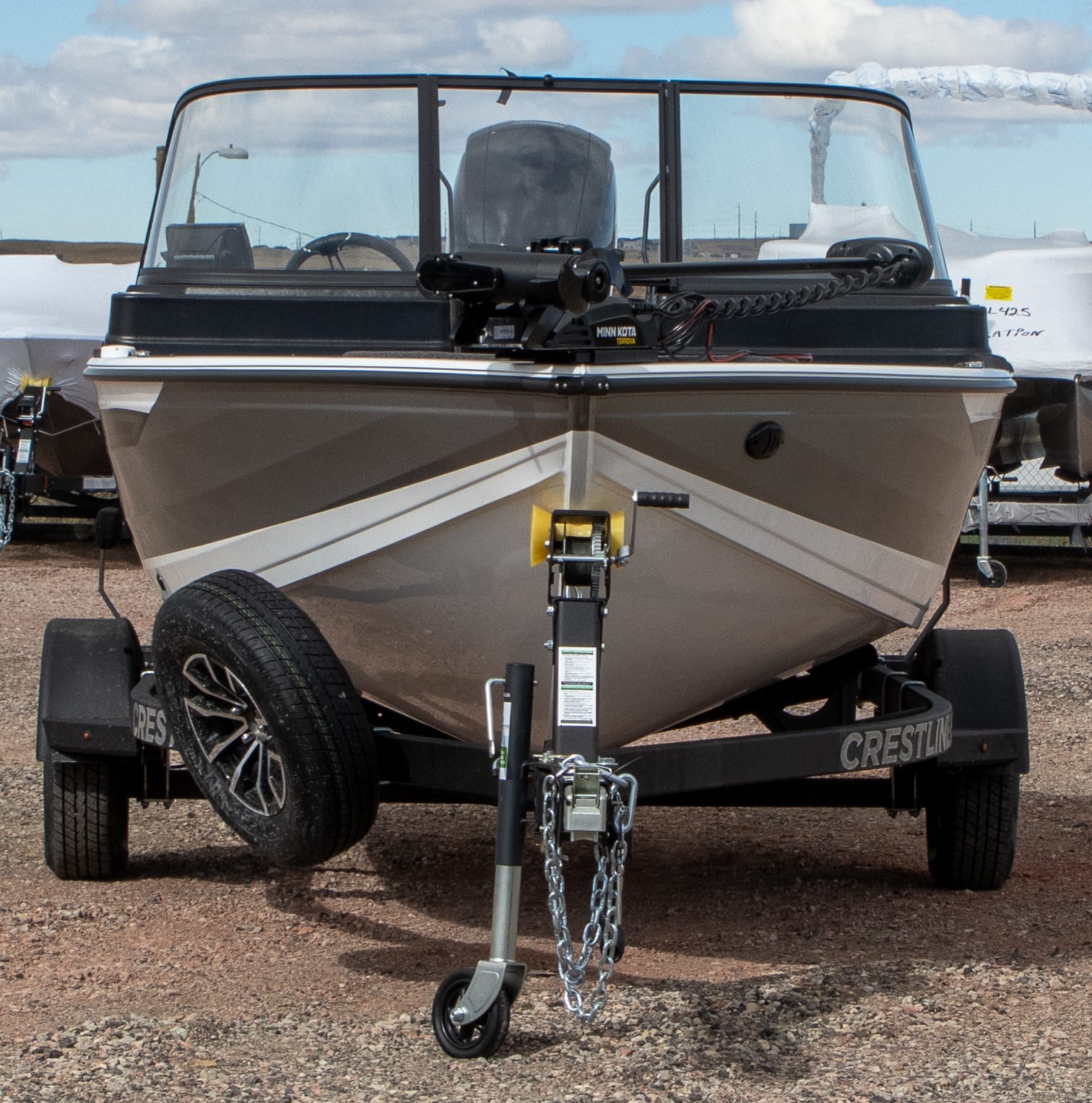 - Platinum Edition Package: Compression latches, stainless steel. Platinum Edition hullside badge, 3D chrome, hullside Crestliner logo, Cupholder, stainless steel, Steering wheel, aluminum polished w/comfort grip upgrade